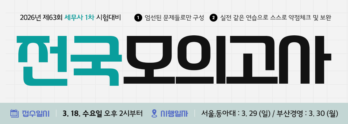 2026년 세무사 1차 시험 대비 전국 모의고사 안내(서울/동아대 : 3월 29일, 부산경영 : 3월 30일 시행)